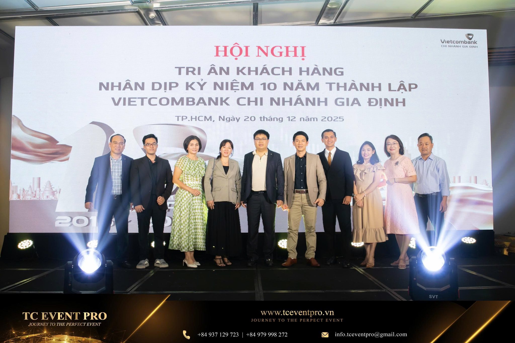 The important event celebrating 10 years of establishment and sustainable development of VCB Gia Dinh Branch which was successfully organized by TC Event Pro as expected, with the participation of nearly 150 VCB Gia Dinh members (included the Board of Directors and employees) at the Pullman Hotel… We sincerely thank to the Board of Directors of VCB Gia Dinh for creating the favorable chance for us accompany and fulfill our role as organizer…